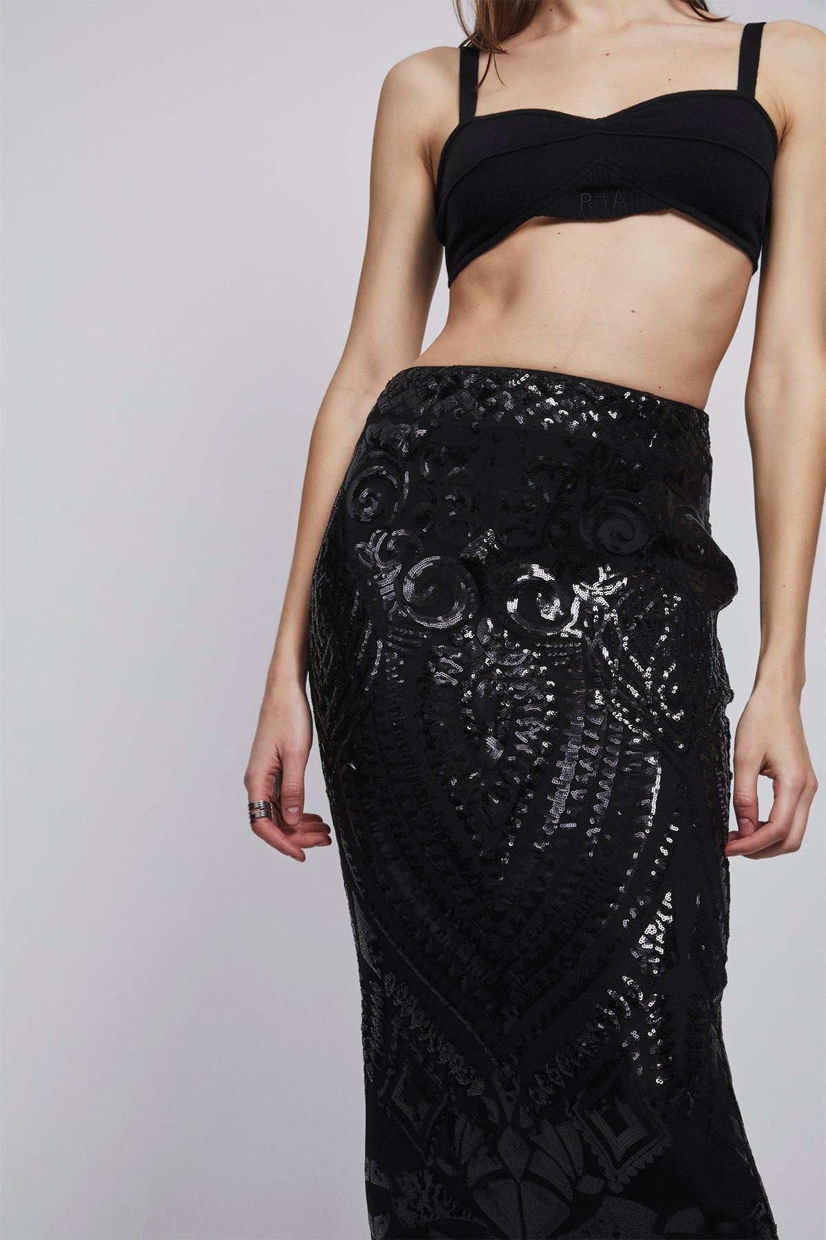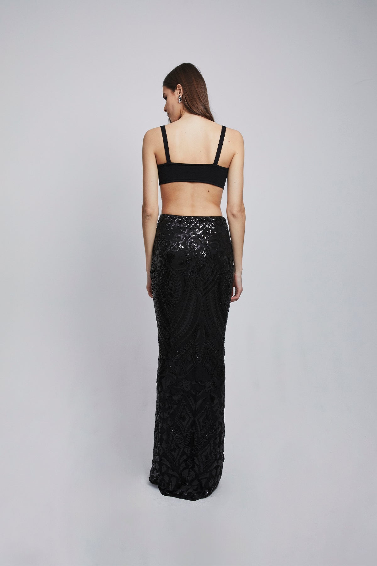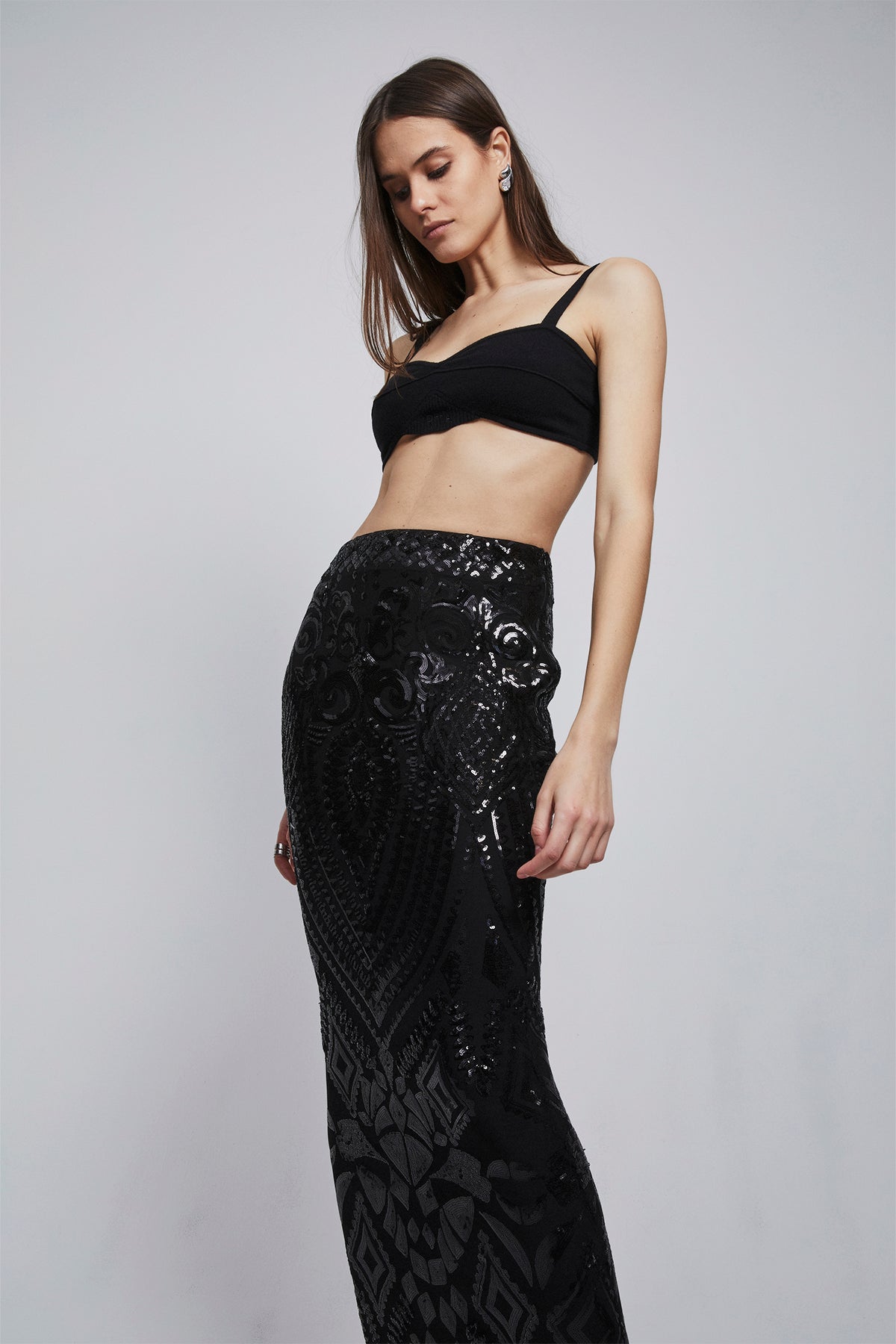The Adele Sequin Maxi Skirt in Black is a maxi length skirt with an all over sequin design and detailing, perfect for elevating your next look.