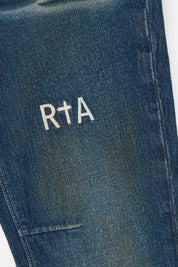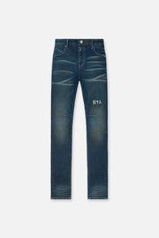 The Bryant Skinny Jean in Old World Blue is made from premium denim. Designed with a skinny fit and reinforced stitching on the inner thighs. These jeans feature the RTA logo on the thigh, a silver cross emblem on the corner of the front pocket, the iconic RTA cross on the back pocket, and signature leather patch on the back waistband. This jean is finished with a dark blue, vintage wash and subtle distressed detailing on the back pockets.