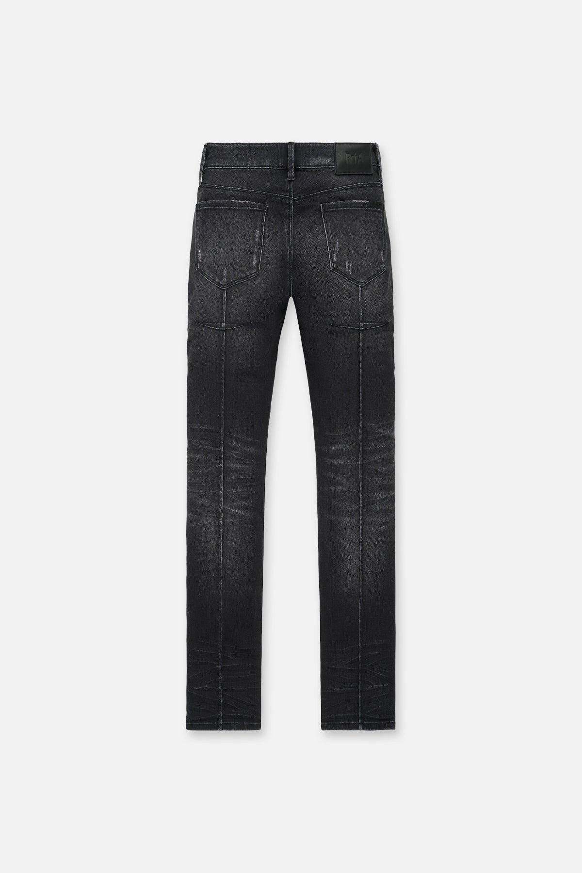 The Clayton Skinny Jean in Graphite Fade is made from high-quality denim. Designed with a skinny fit and reinforced stitching on the inner thighs, these jeans feature a faded wash, the iconic RTA cross on the back pocket, signature leather patch on the back waistband, distressed detailing on the back pocket, and pin-tuck dagger seams down the back legs.