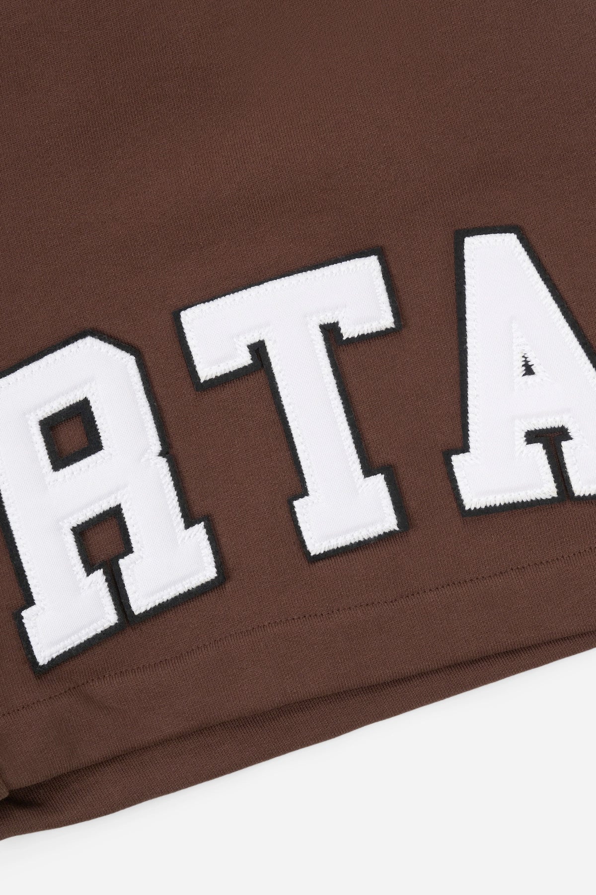 The Clyde Short in Brown Collegiate is premium cotton short featuring a collegiate inspired RTA logo and star patch detailing with dual side pockets, an elasticated waistband and adjustable drawstring closure.