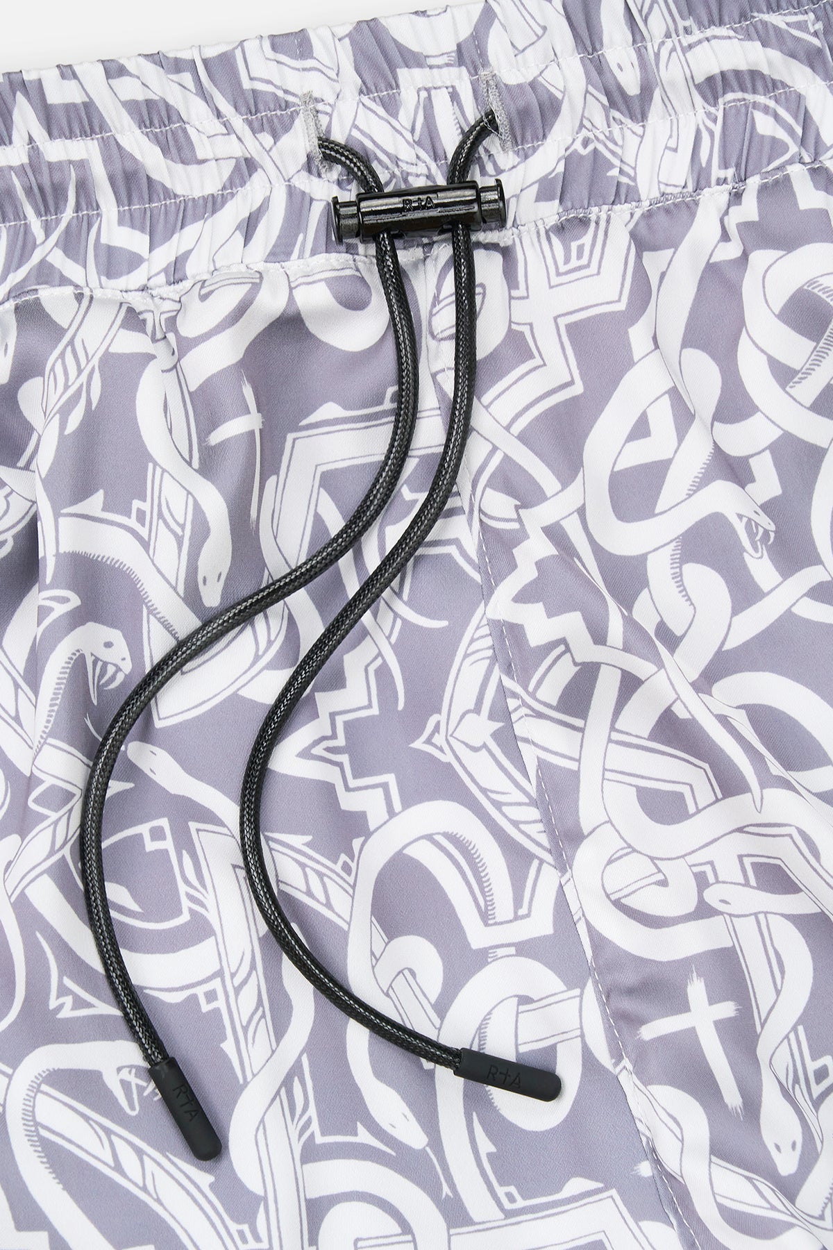 The Clyde Short in Grey Exotic Snake is a lightweight short designed with an all over serpent inspired graphic and hidden RTA crosses throughout. These shorts feature an elasticized waistband and a coated, toggle drawstring for an adjustable fit.