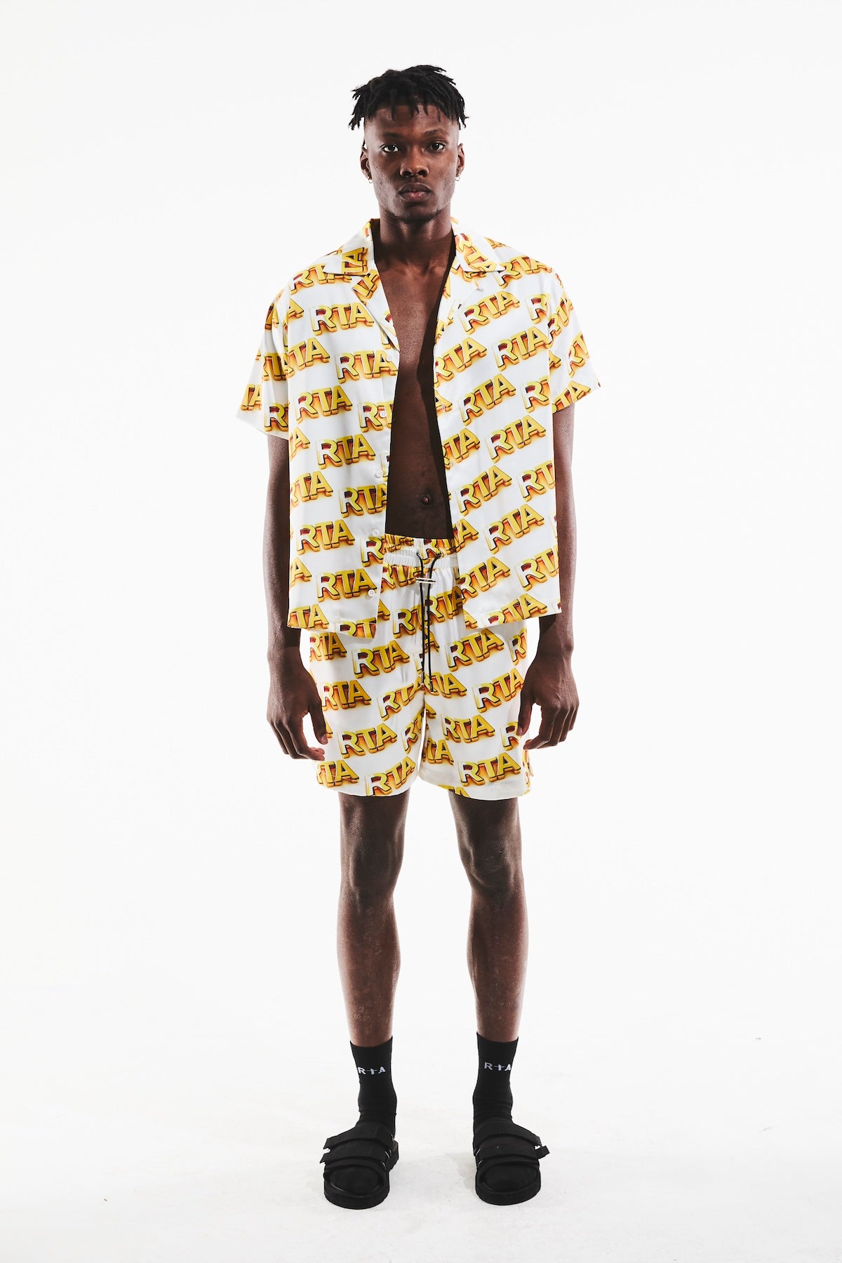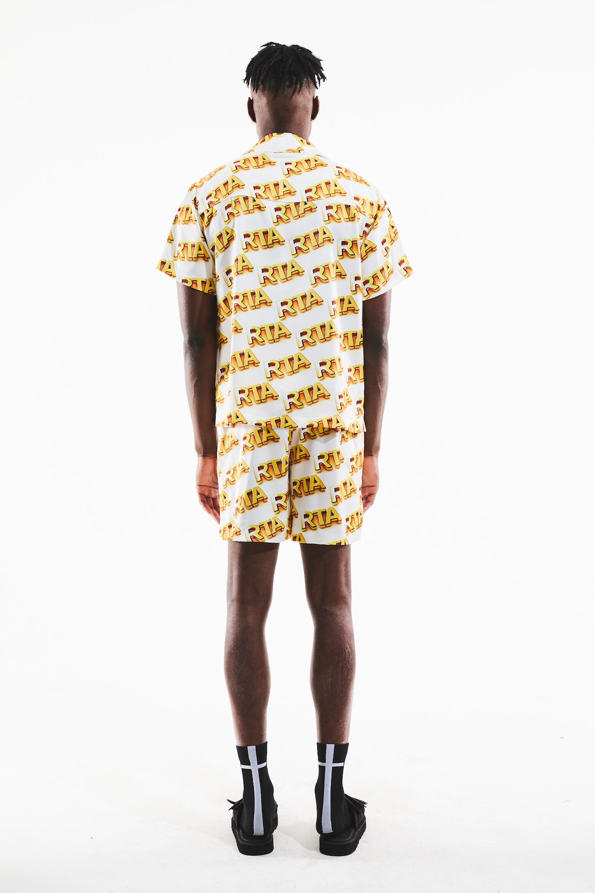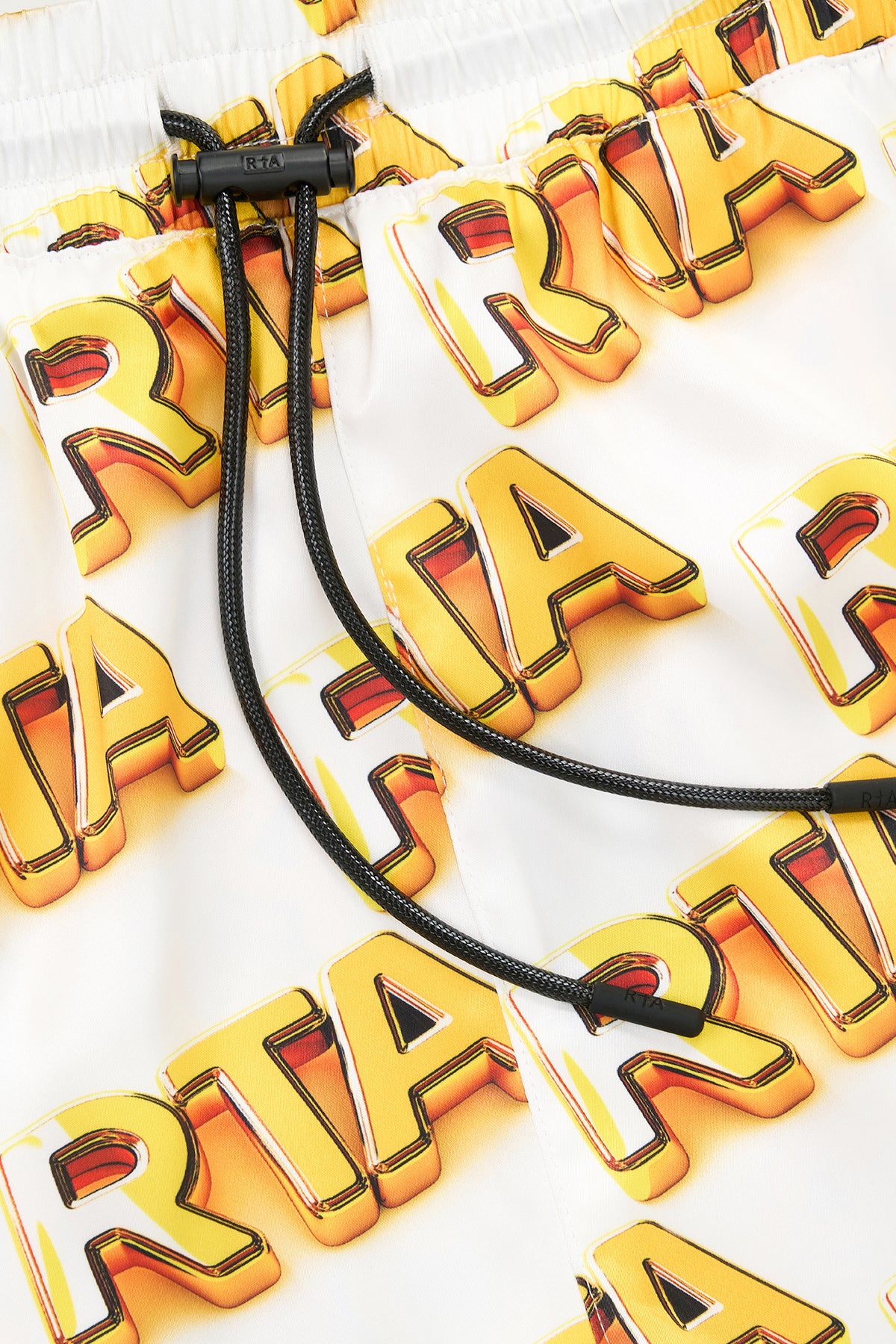 The Clyde Short in with RTA Bullion is a lightweight, silky short designed with an all over RTA logo in a metallic gold gradient and a 3D effect, designed to resemble the look of gold bars. These shorts feature an elasticized waistband, side pockets, and a coated, toggle drawstring for an adjustable fit.