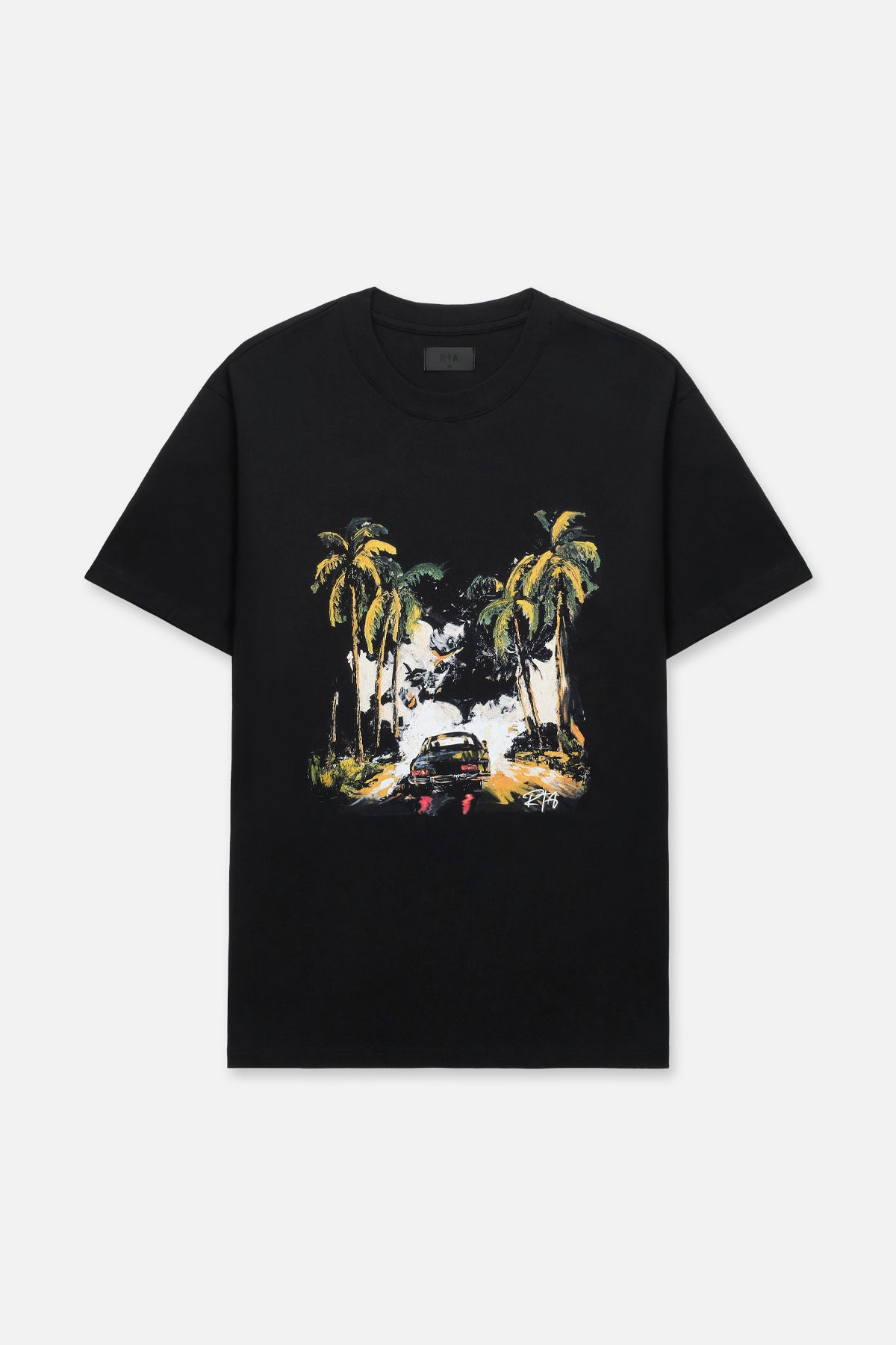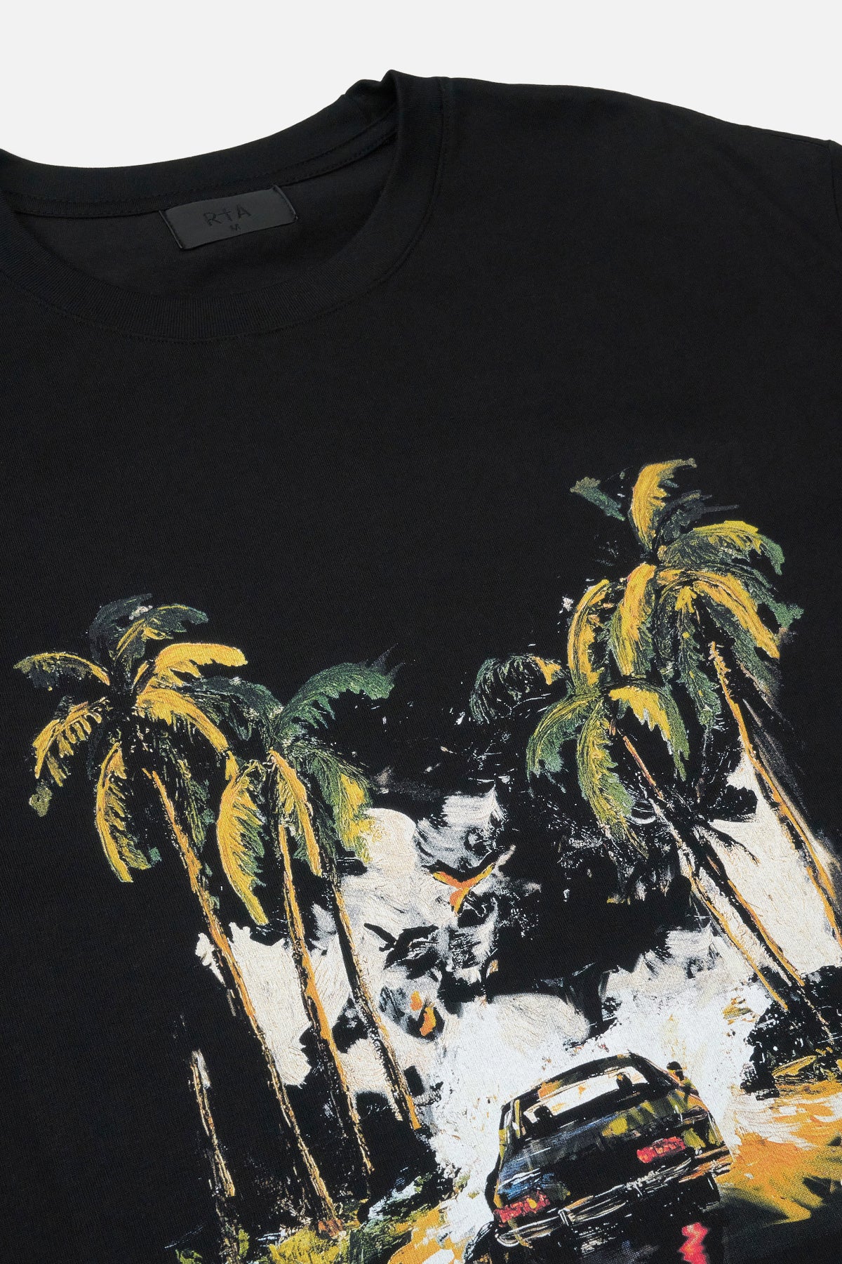 The Colin Oversized Short Sleeve Tee in Black Car Rebel is an oversized, crew neck tee made from 100% Cotton. This tee features original RTA artwork of a car driving through the streets of Los Angeles.