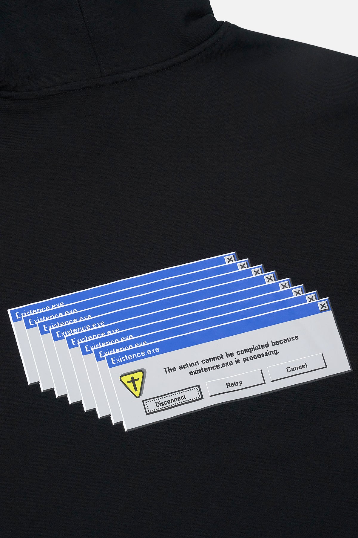 The Dion Hoodie in Black Windows Error is made from 100% Cotton. Designed with reinforced, coated drawstrings, kangaroo pocket, and a ribbed waistband and cuffs. This hoodie features a keyboard inspired RtA logo across the chest and windows error graphic on the back.