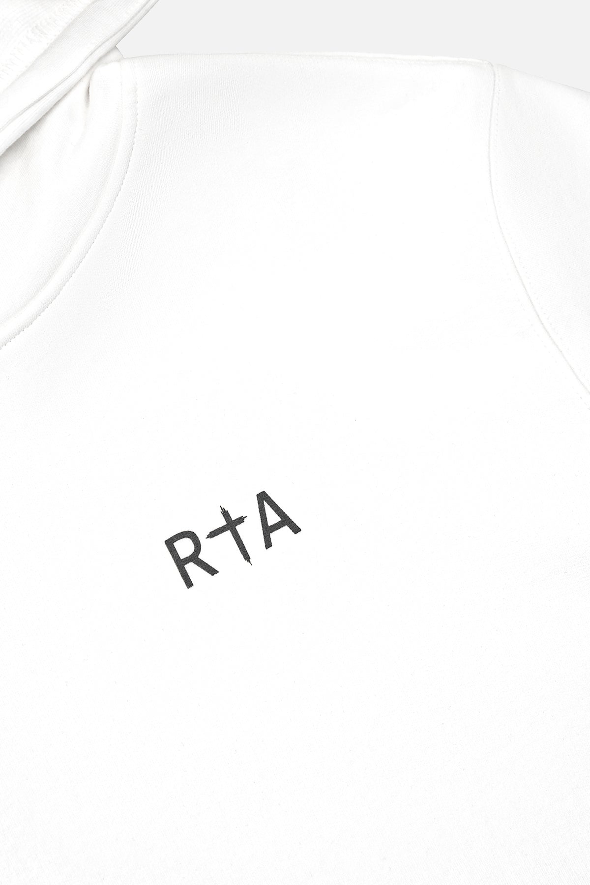The Dion Hoodie in White Crosses is made from 100% Cotton. Designed with reinforced, coated drawstrings, kangaroo pocket, and a ribbed waistband and cuffs. This hoodie features the classic RtA logo on the chest, cross motifs on each arm, and RtA logo on the lower back.
