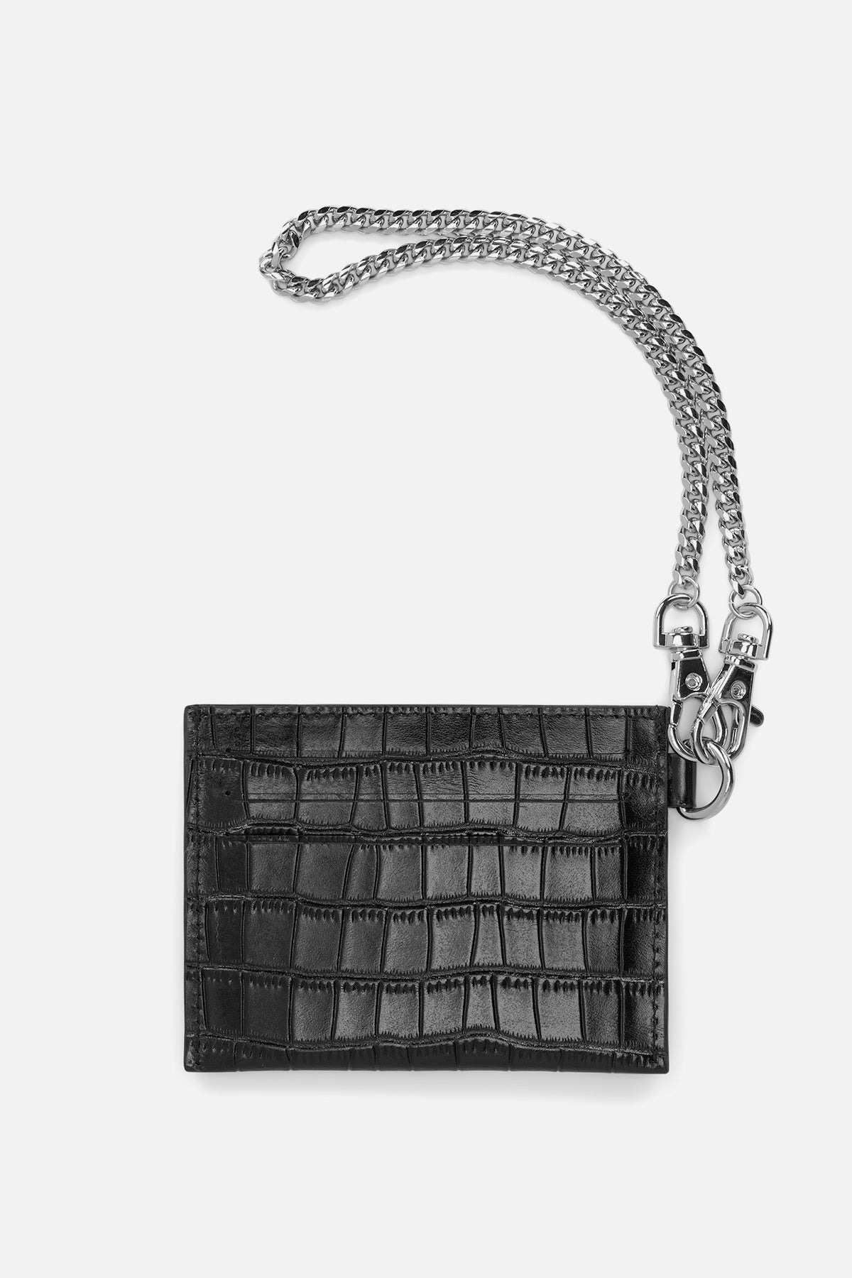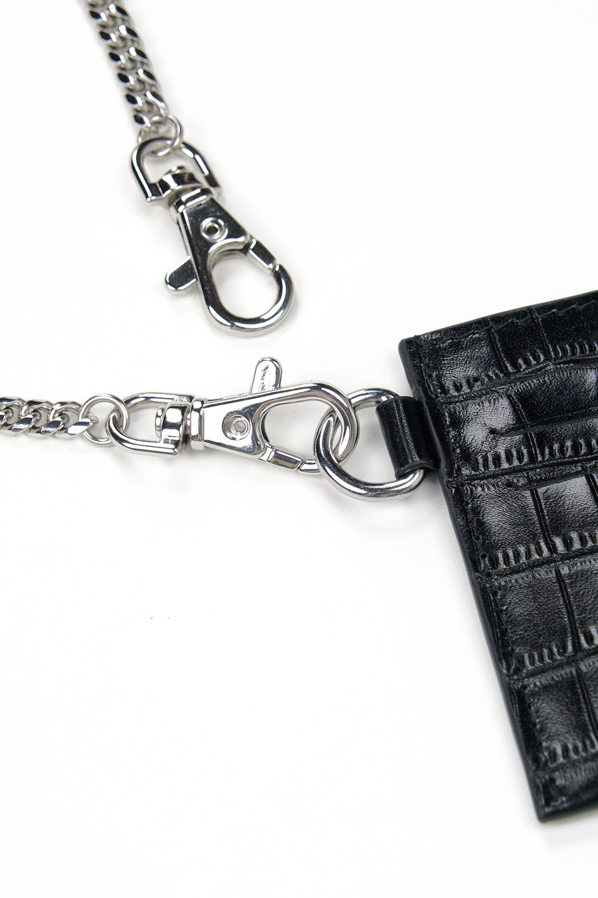 The Dominic Wallet Chain in Black is crafted from real, premium crocodile-embossed leather. Featuring a compact and functional design, detachable silver-tone chain, and the RTA logo in polished metal.