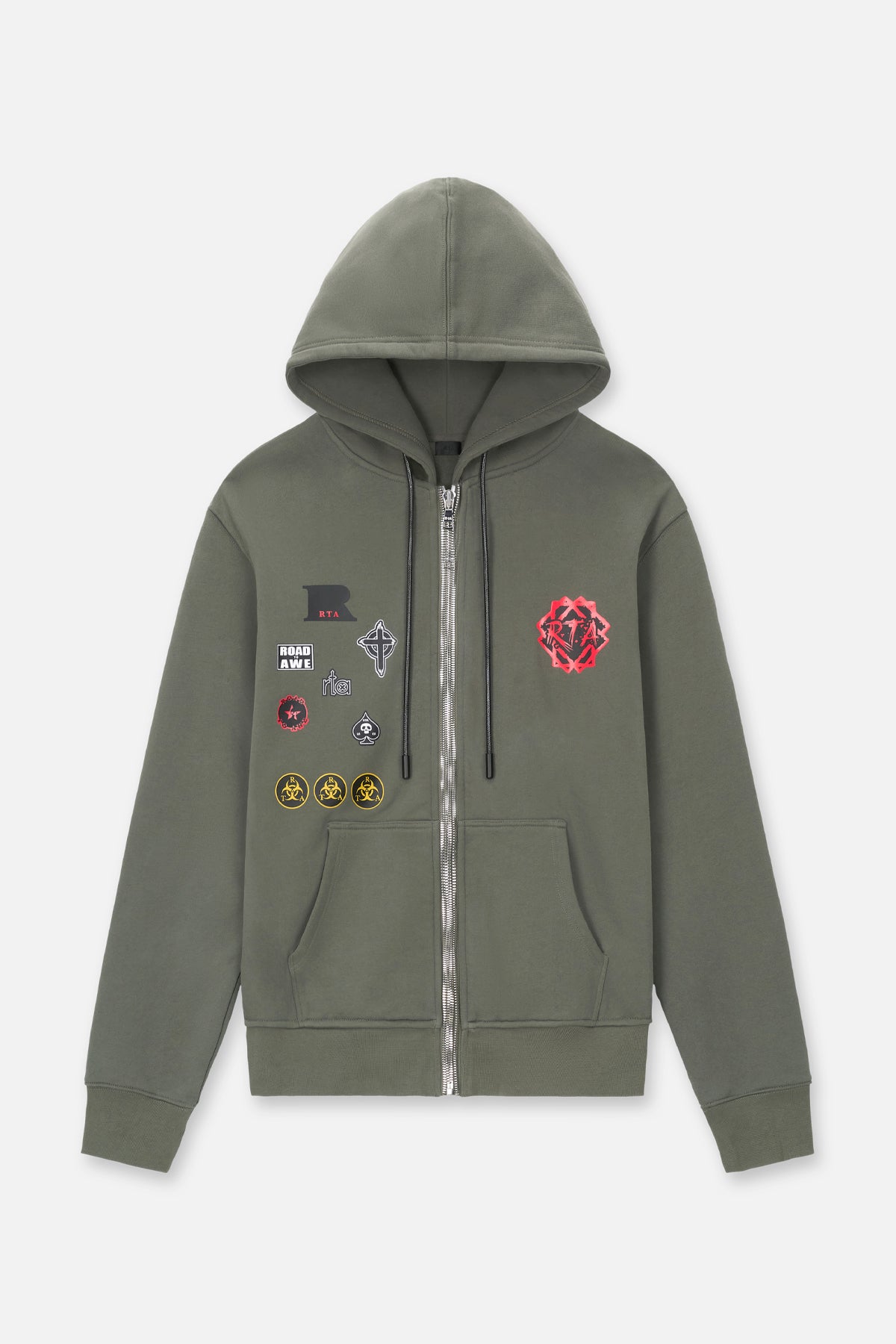 FLOYD ZIP UP HOODIE | OLIVE MILITARY PATCH