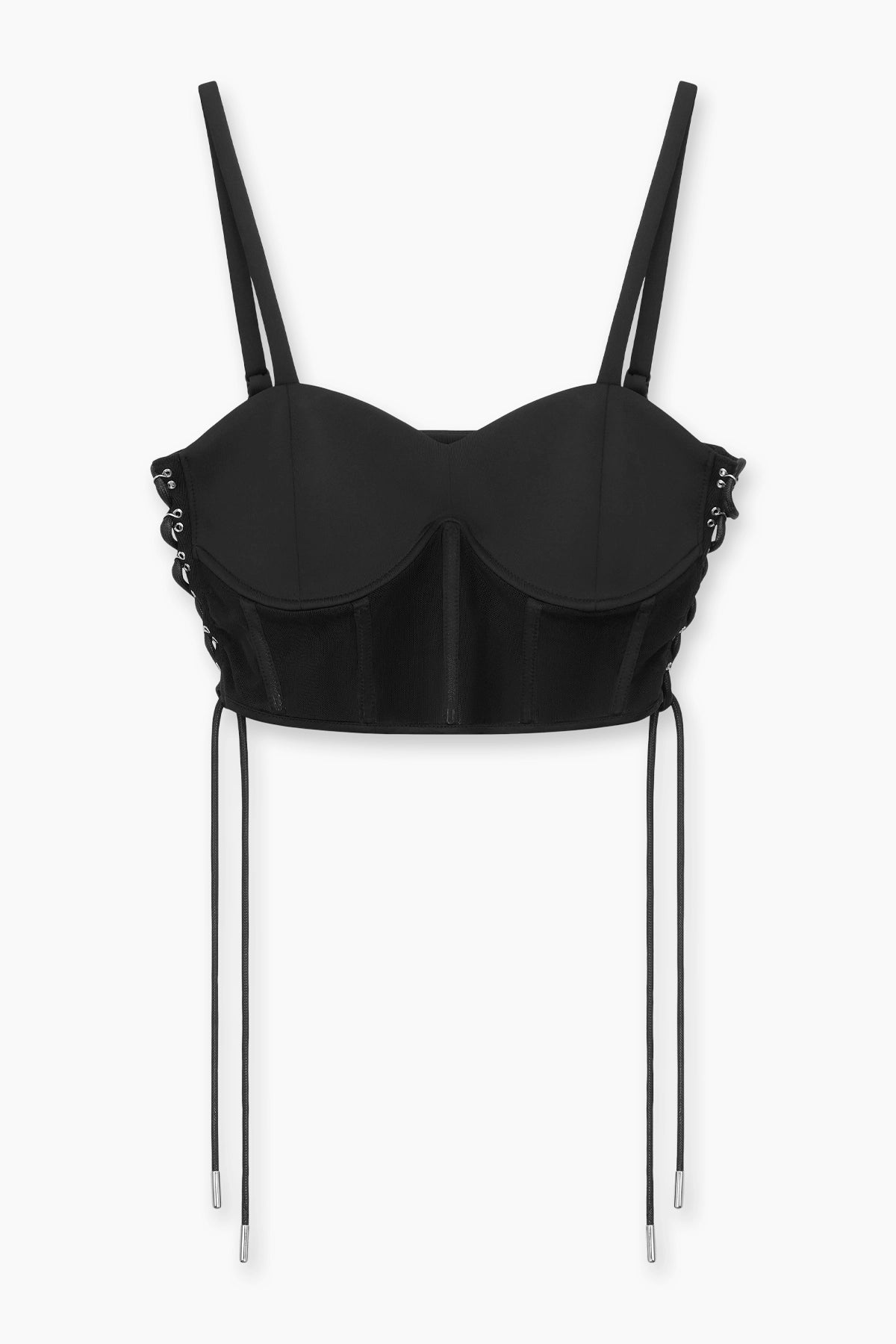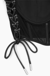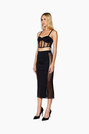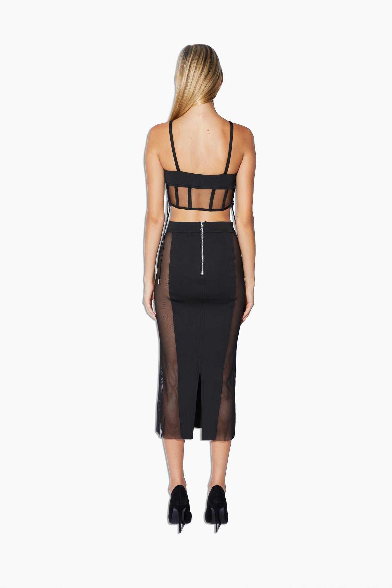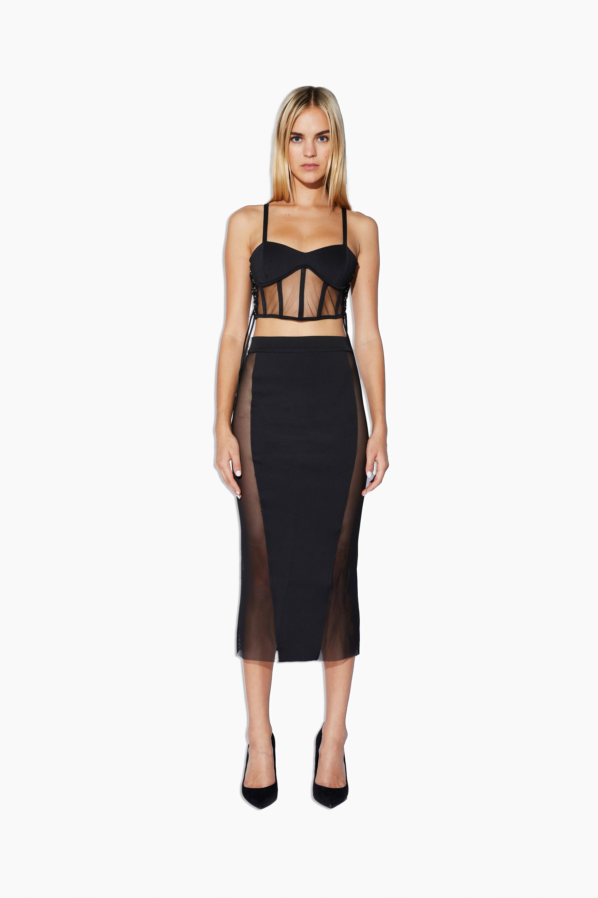 The Gizelle Top from RTA elevates the average bra top with mesh corset insert and side lace details. Pair with our Gizelle Skirt to complete the look.