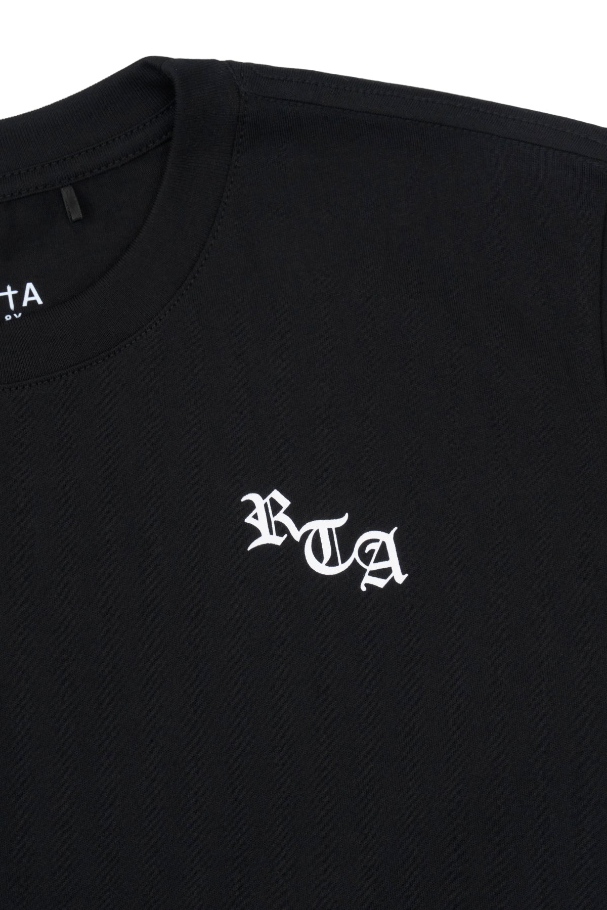 The Lawson Short Sleeve Tee in Black Old English LA is a short sleeve tee made from 100% Cotton, featuring an Old English RtA logo on the chest and Los Angeles cross motif on the back.
