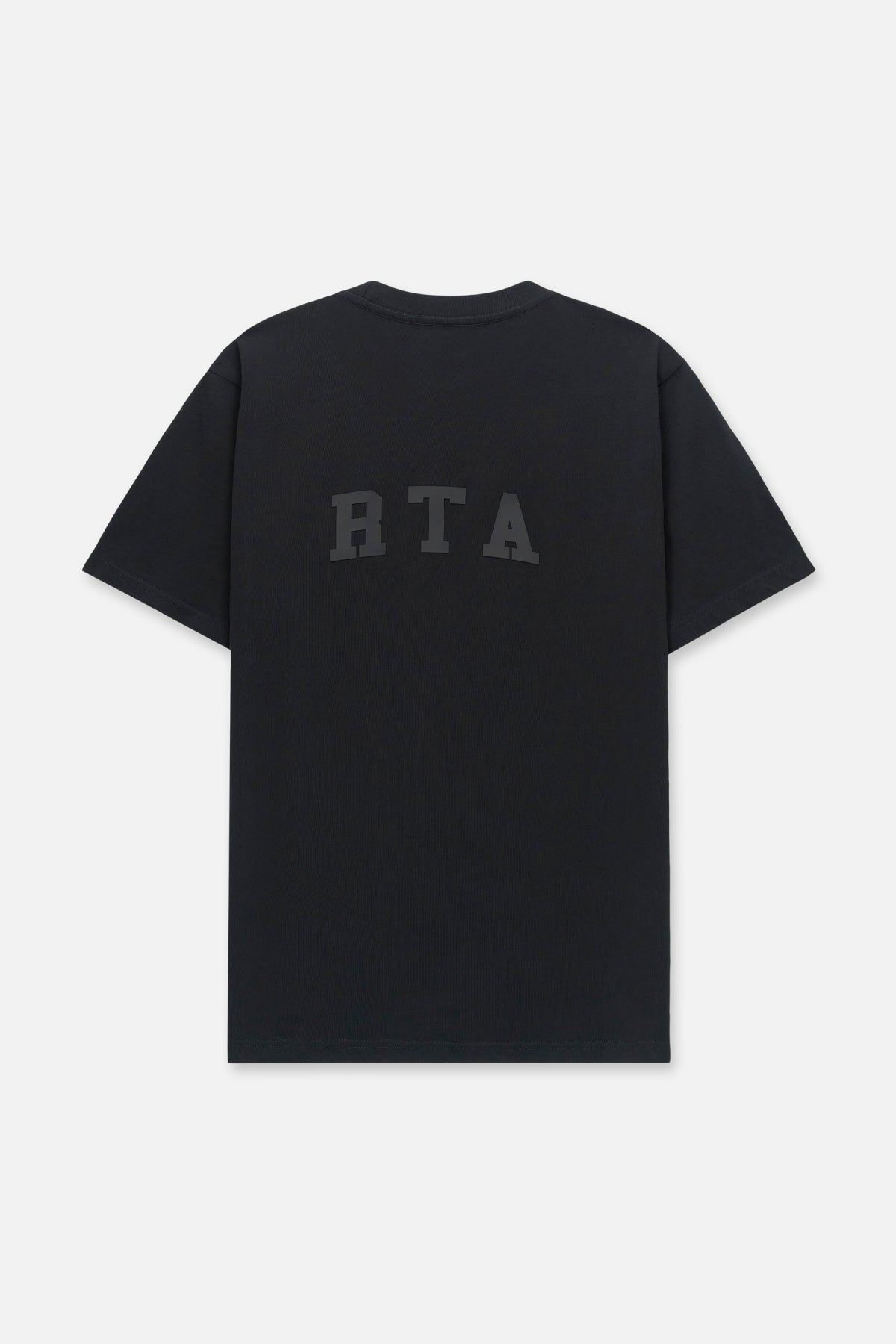 The Liam Short Sleeve Tee in Black Collegiate is a regular fit, crew neck tee made from 100% Cotton. This tee features a collegiate inspired RtA logo on the front and back.