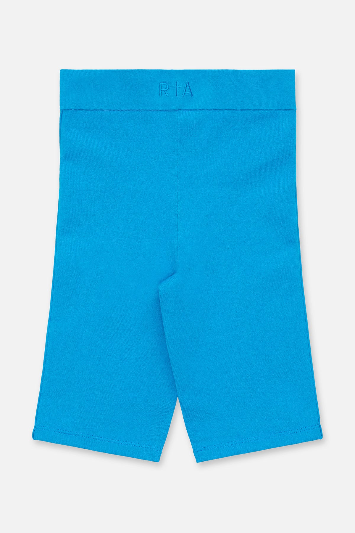 The Lumi Short in Cyan Blue is designed with an elastic waistband that features a monochromatic RTA logo on the front and back, ribbed detailing, and a topstitch design. Pair with our Nour and Nyra Tops in Cyan Blue for the perfect look.