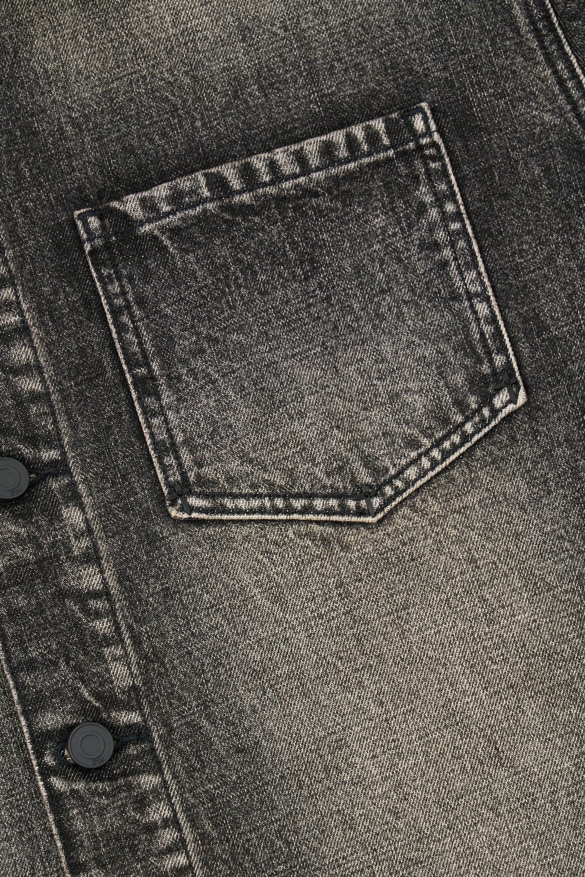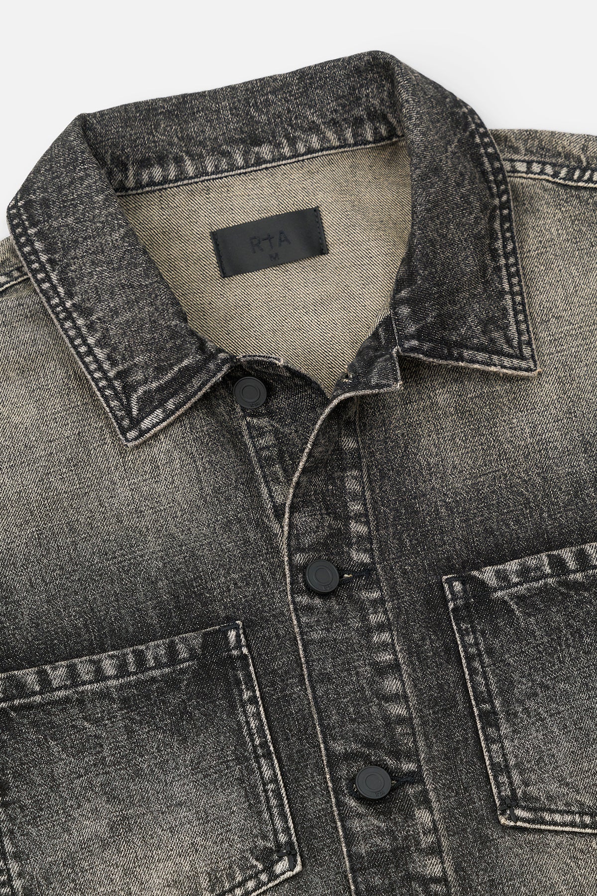 The Norris Jean Jacket in Ash Storm is made from premium denim. Designed with classic details including a turn down collar, button-down closure, dual chest pockets with silver cross emblems, and side pockets finished with an Ash Gray wash.