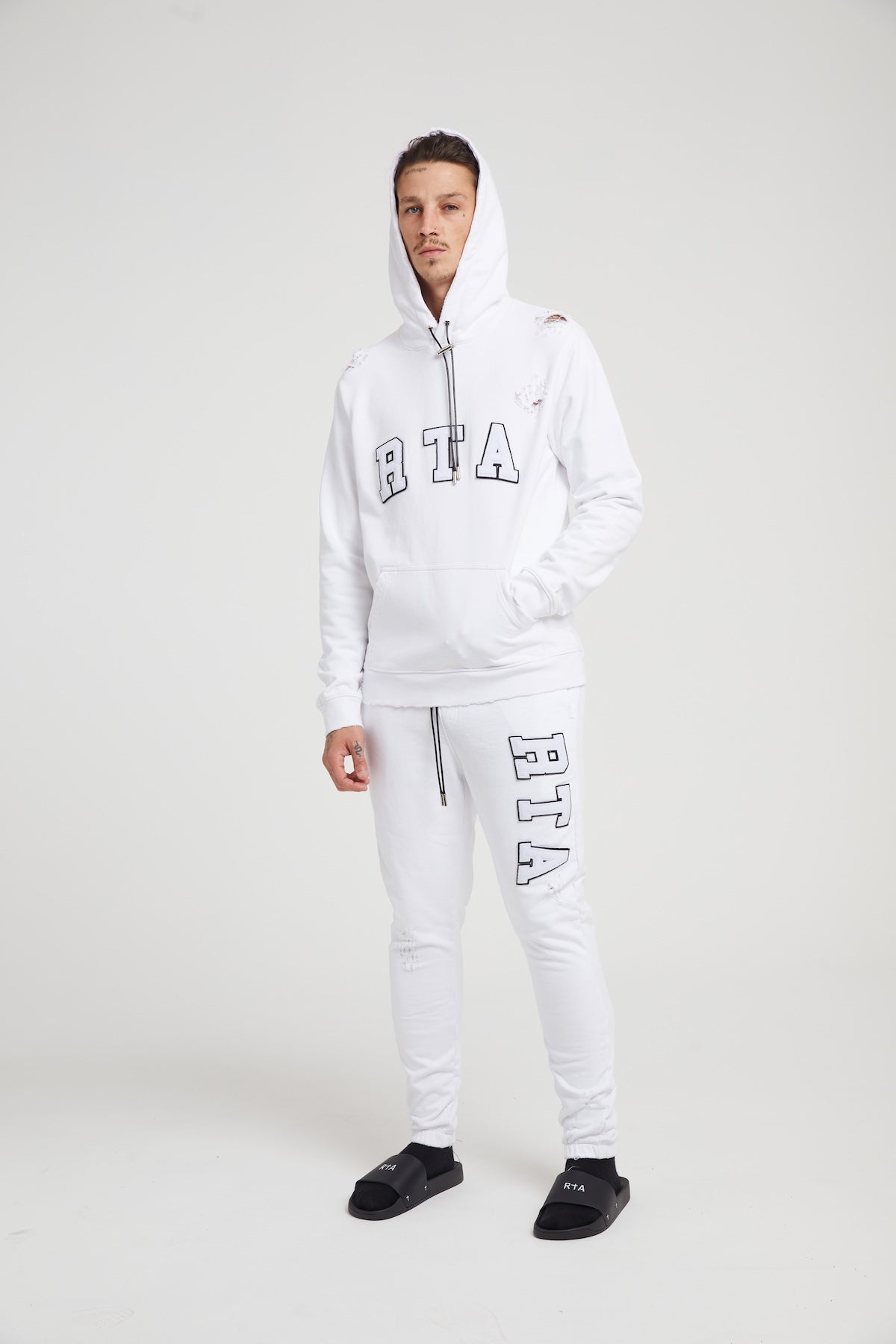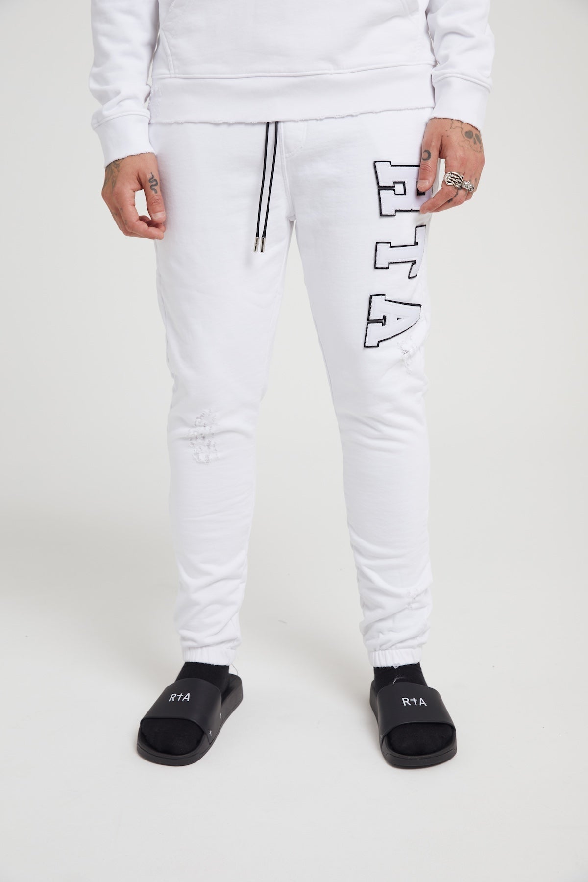The Owen Sweatpant in White Collegiate is a premium cotton pair of sweats featuring a collegiate inspired RTA logo detailing with dual side pockets, an elasticated waistband and adjustable drawstring closure.