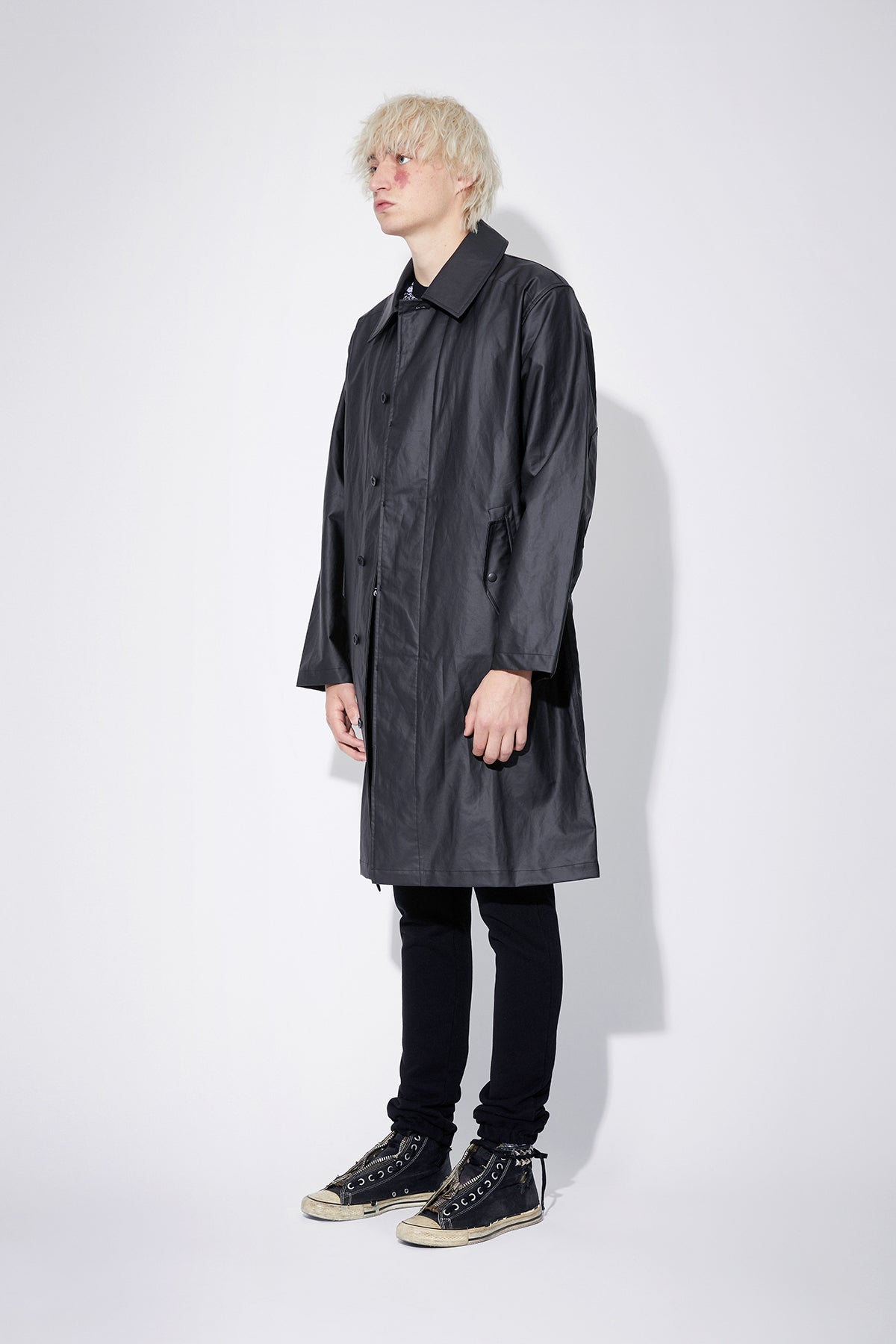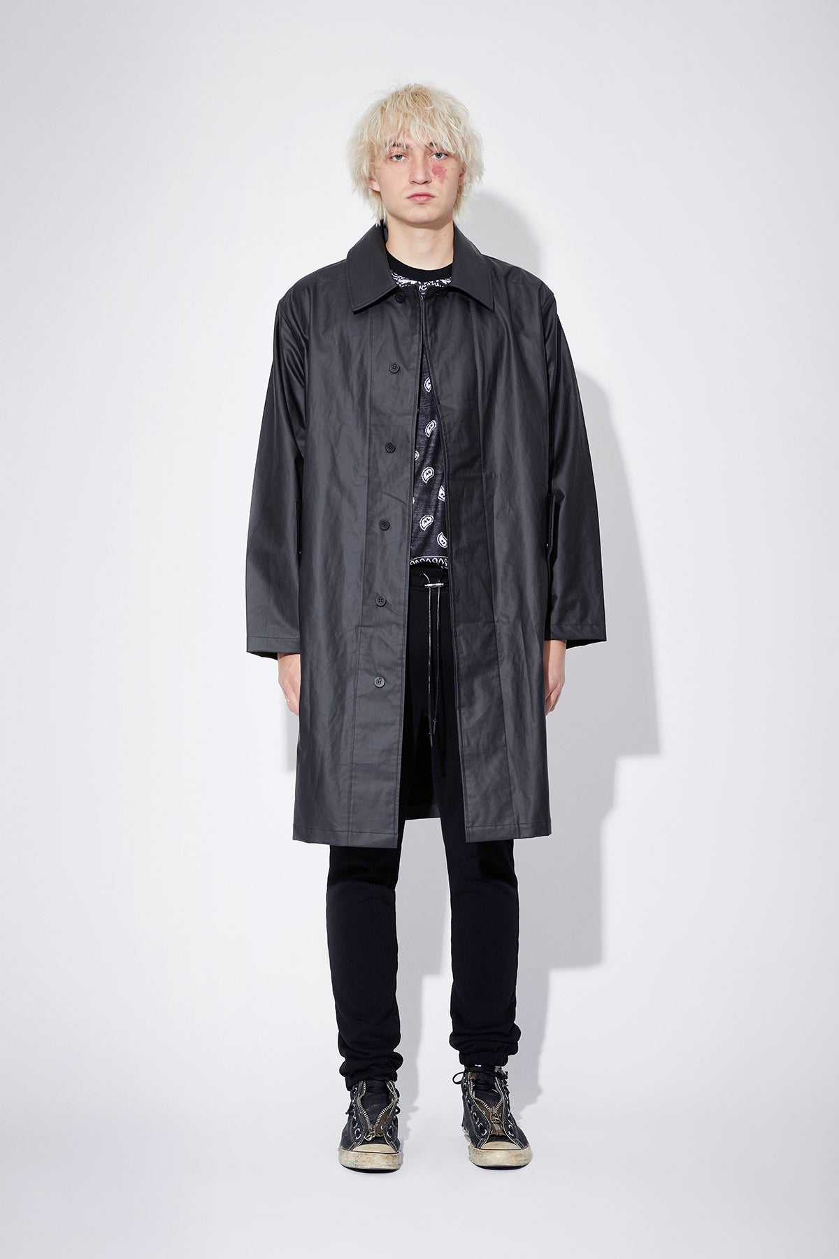 The RTA Pluto Coat is cut in black nylon and showcases a long, collared lab coat silhouette with a concealed snap button placket. To stand out, it ofers an extra large RTA patch on the back, two front snap flap pockets with an RTA logo tab and one flap pocket on the back.