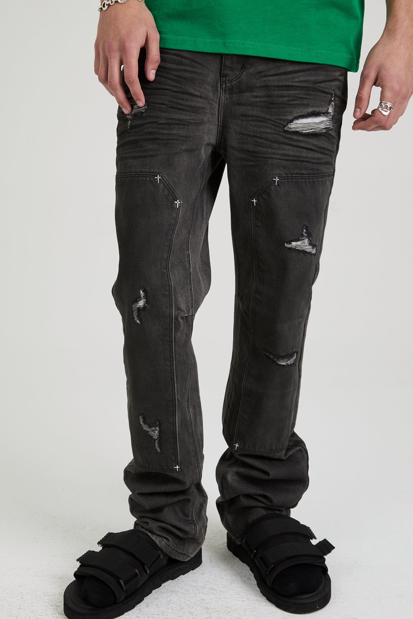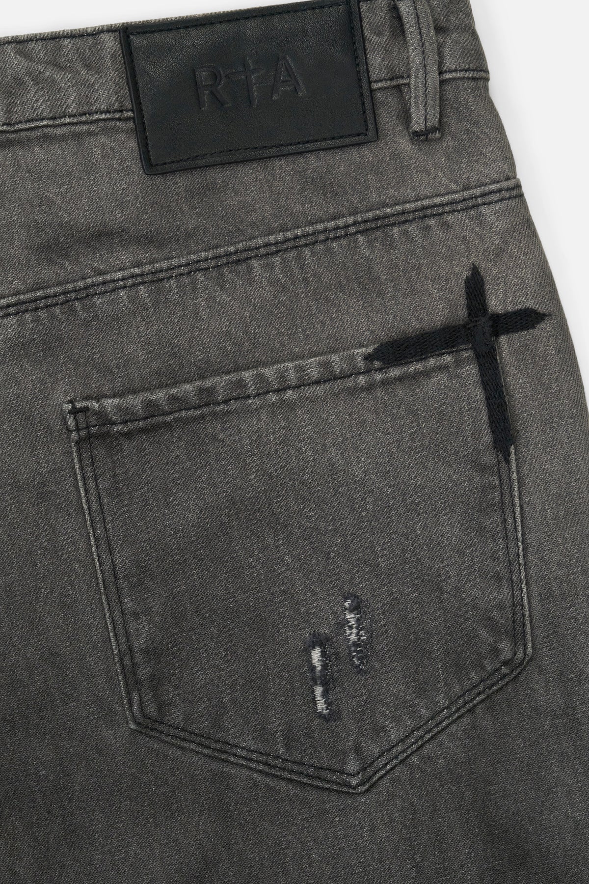 The Ricardo Jean in Sandstone is made from premium denim. Designed with a slim fit and distressed denim panels down the front legs, these jeans feature a silver cross emblem on the front pocket, the iconic RTA cross on the back pocket, and signature leather patch on the back waistband.