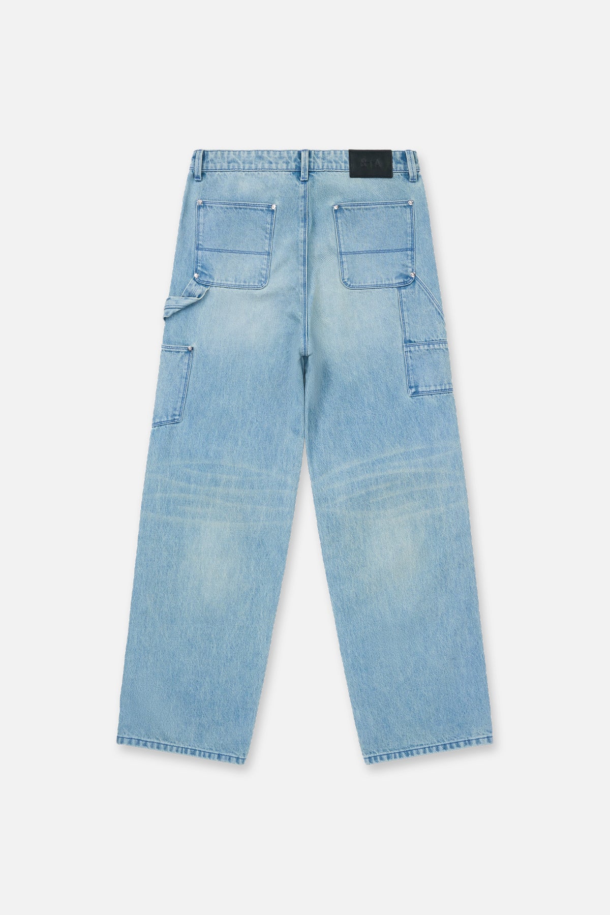 The Santiago Carpenter Jean in Ocean Mist Cross Cut is made from premium denim. Designed with a straight leg silhouette, these jeans feature reinforced knee panels with a unique cross cut pattern, oversized front patch pockets, back pockets, side utility pocket, and signature leather patch on the back waistband.