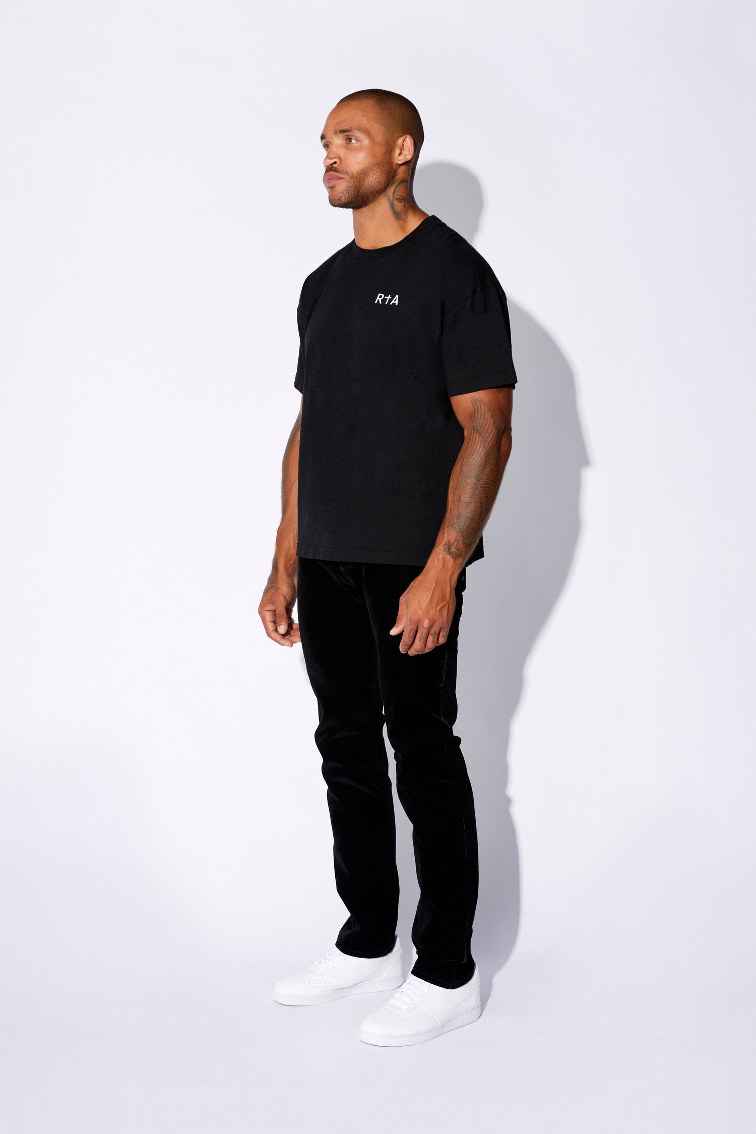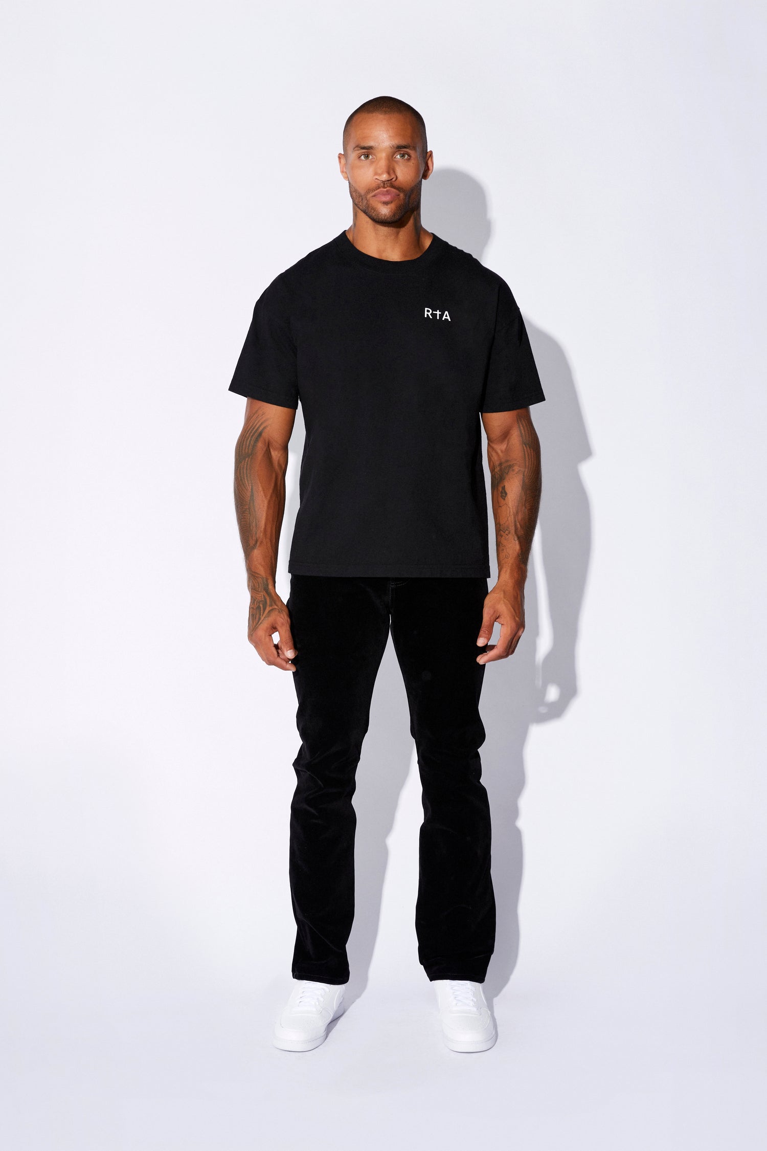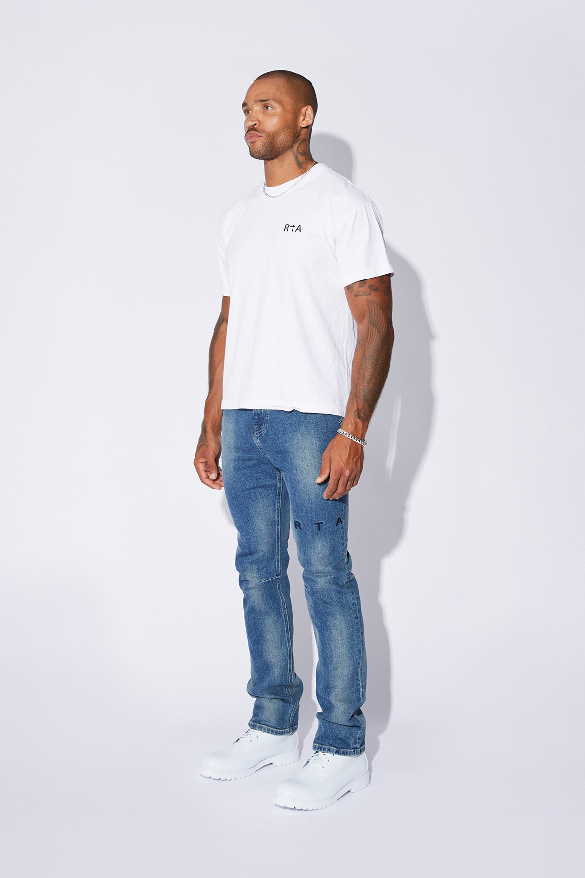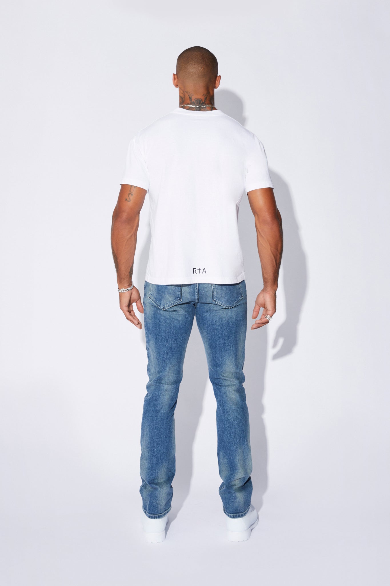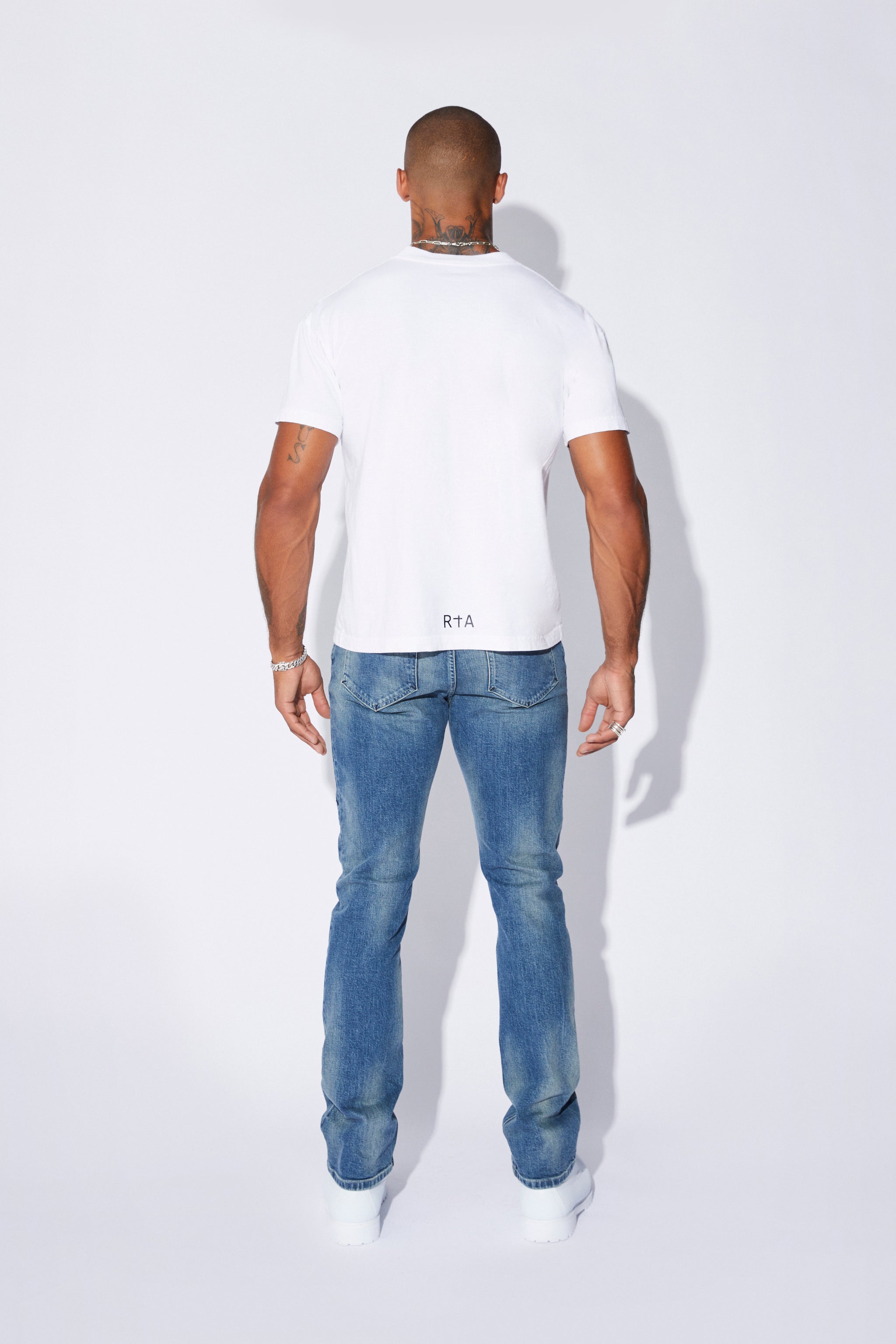 The Colin Short Sleeve Tee in White Chest Logo is a cotton crewneck t-shirt with a white RTA logo graphic above the left chest.