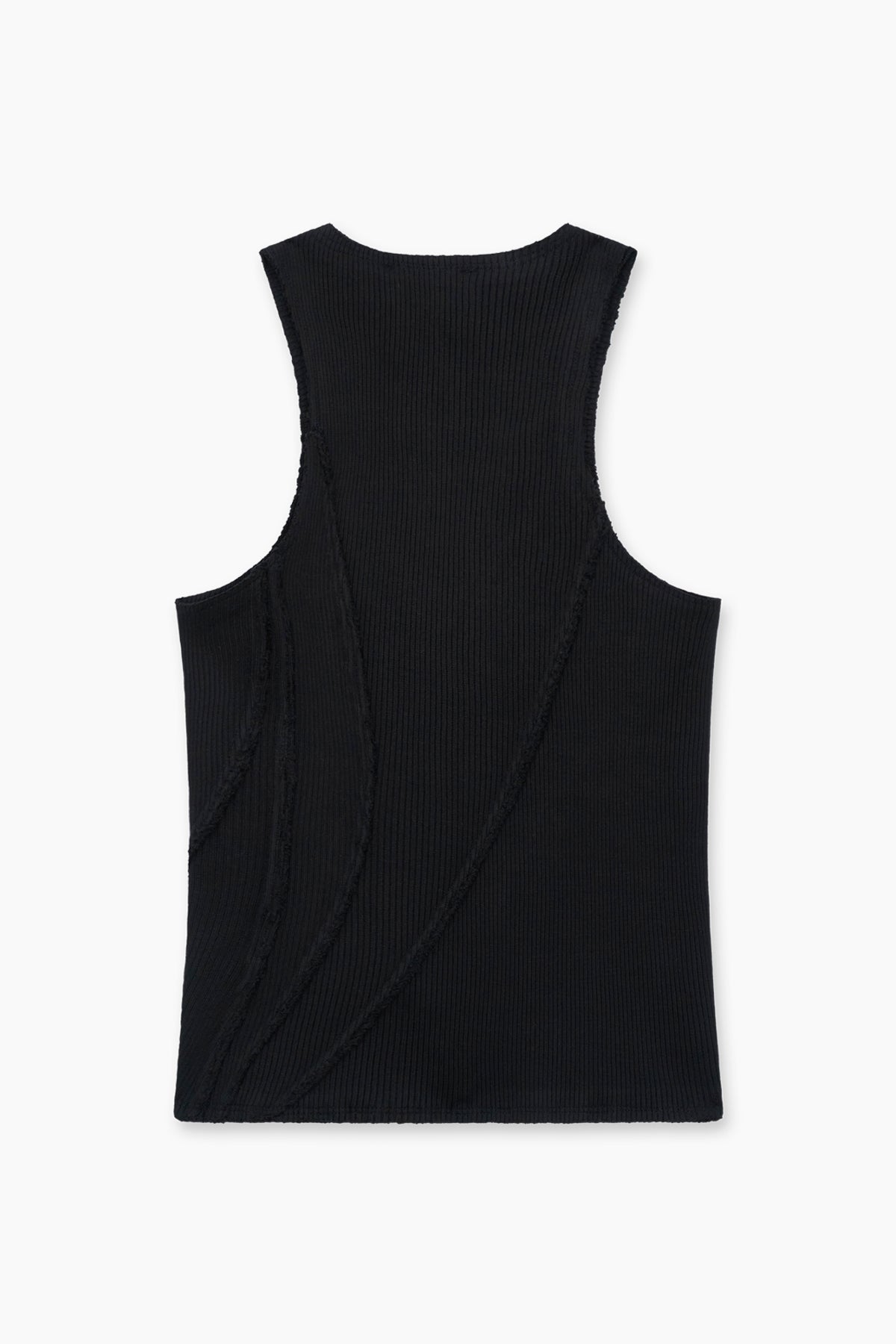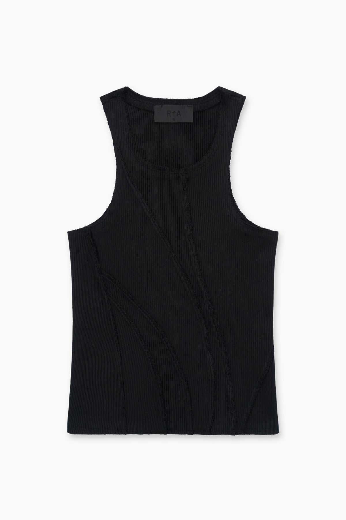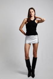The Vida Tank Top in Black is a ribbed, racerback tank top with topstitch detailing, putting a new twist on a classic staple. Pair with our Yvette Ultra Mini Skirt in Silver for the perfect look.