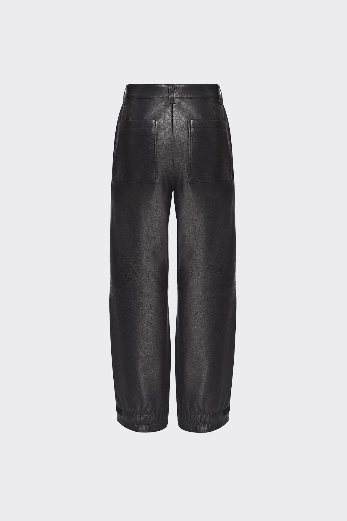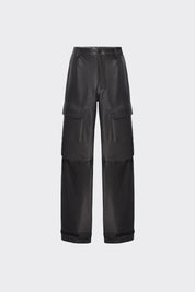 WIDE LEG LEATHER CARGO PANTS | BLACK