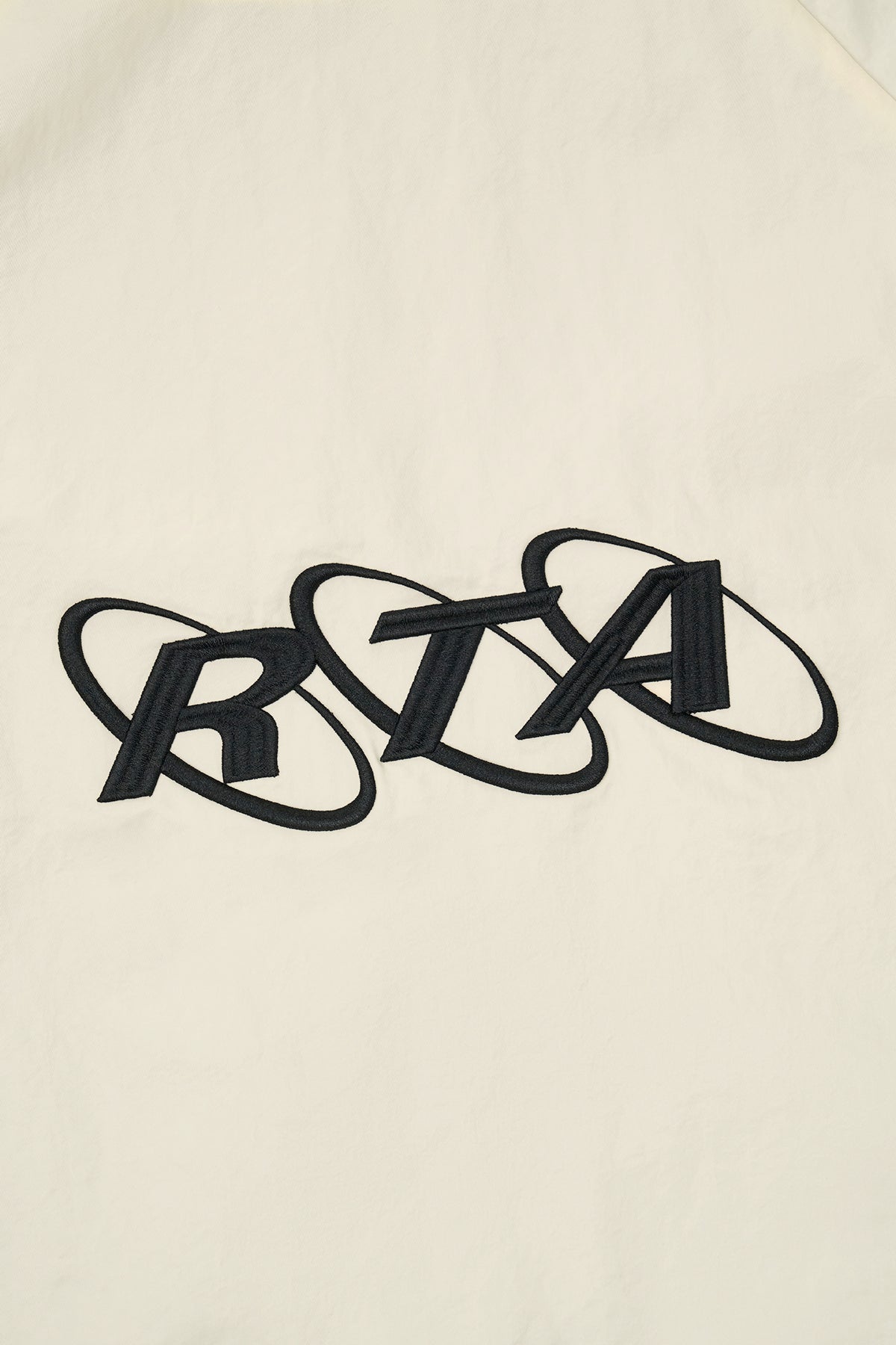 The Zayden Windbreaker Jacket in Raw Sand is made from lightweight woven fabric with a relaxed, zip-front silhouette and fixed hood. The jacket features contrast piping throughout with a black chest panel and subtle RTA branding. Finished with elastic cuffs and an adjustable drawcord hem.