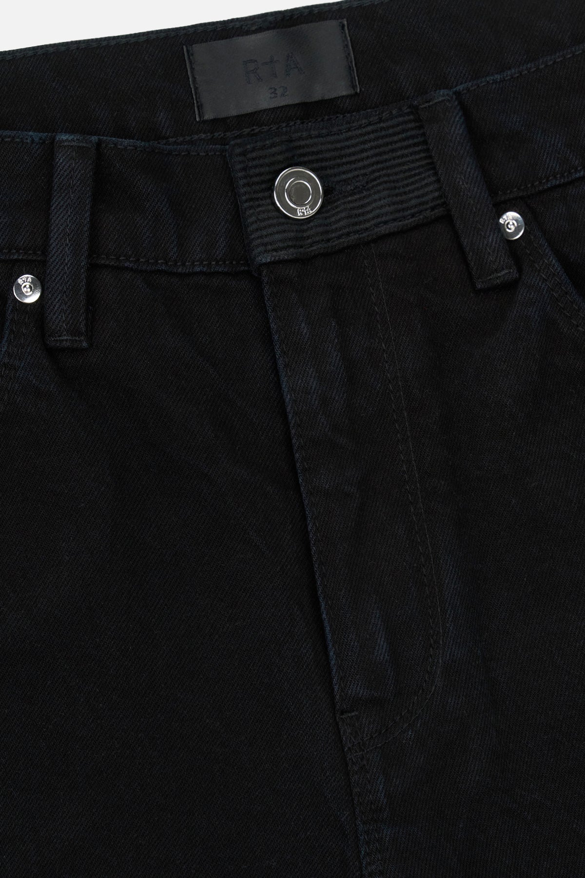 The Zed Straight Leg Jean in Black Snake Panels is is made from premium denim. These jeans are designed with a straight leg fit and feature distressed detailing down the front of the legs, panels of snake print down the sides, reinforced stitching on the inner thighs, the iconic RTA cross on the back pocket, and signature leather patch on the back waistband.